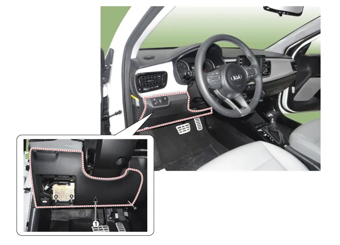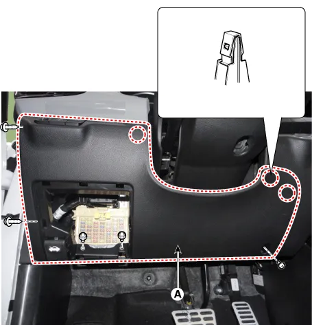 Separate the crash pad lower panel (A) after loosening the bolts and screws.