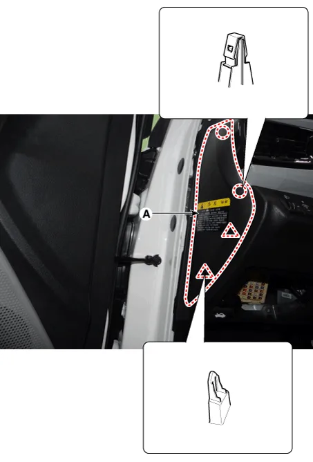 Remove the crash pad side cover [LH] (A) by using a remover.