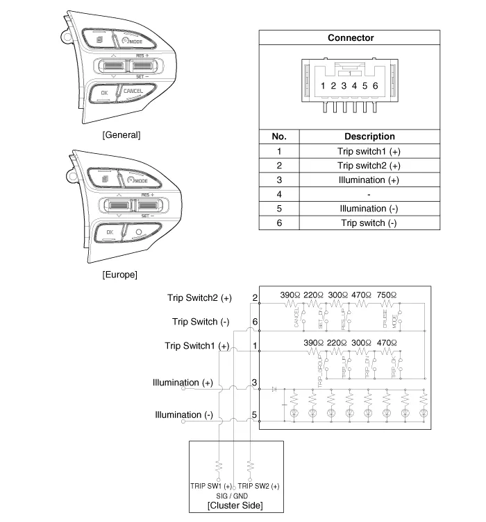 Description and operation Description The cruise control system is engaged by the cruise "ON/OFF" main switch located on right of steering wheel column.