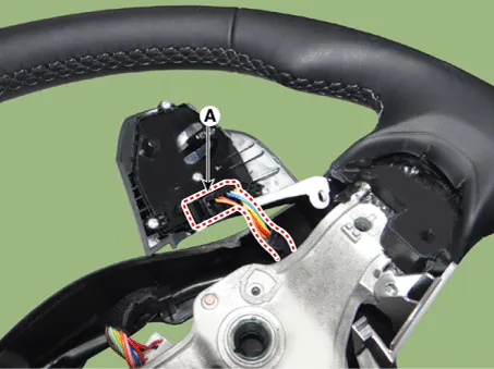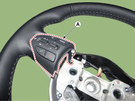 Remove the steering wheel remote control (A) after loosening the mounting screws. [LH]