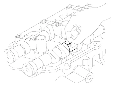 Check the surface of the camshaft journal for wear. If the journal is worn excessively, replace the camshaft. |