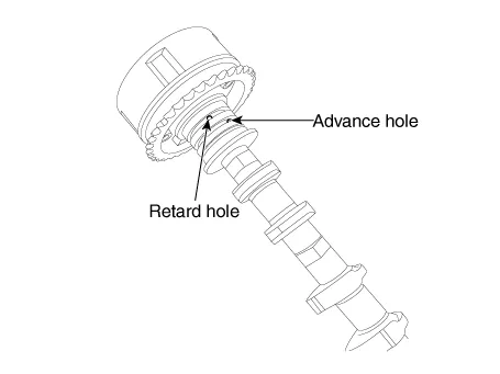 The engine oil released from the CVVT oil control valve varies the cam phase in the direction (Intake Advance/Exhaust Retard) or opposite direction (Intake Retard/Exhaust Advance) of the engine rotation by rotating the rotor connected with the camshaft inside the cam phaser.