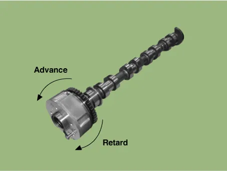 Continuous Variable Valve Timing (CVVT) system advances or retards the valve timing of the intake and exhaust valve in accordance with the ECM control signal which is calculated by the engine speed and load.