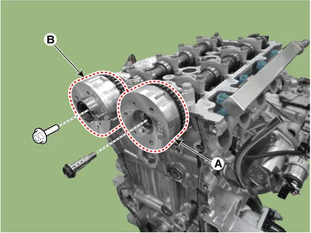 Remove the intake CVVT (A) and exhaust CVVT (B).