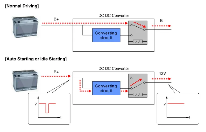 The DC/DC converter supplies the relay with a voltage that also remains constant during the starting operation.