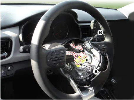 Disconnect the air bag connector (A) and horn connector (B).