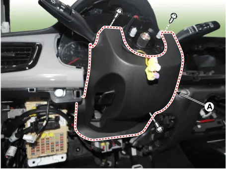 Remove the upper steering wheel column shroud (A).