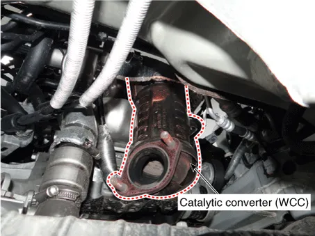 | 1. PCV valve 2. Canister 3. Purge control solenoid valve (PCSV) 4. Catalytic converter (WCC) 5. Catalytic converter (UCC) |