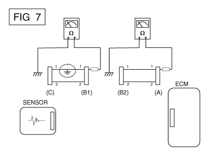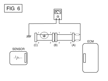 is 1Ω or less. The short to ground circuit is between terminal 1