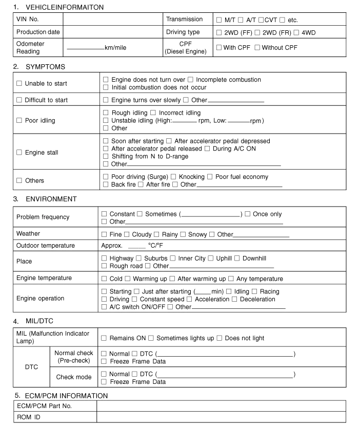 Inhibitor switch (A/T) or clutch start switch (M/T)