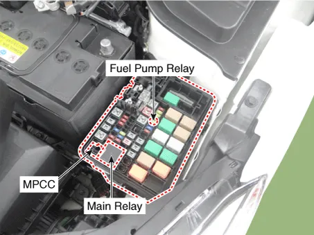 21. Main Relay [EMS Box] 22. Fuel Pump Relay [EMS Box] 24. Multi-Purpose Check Connector (MPCC) [6 Pin] |