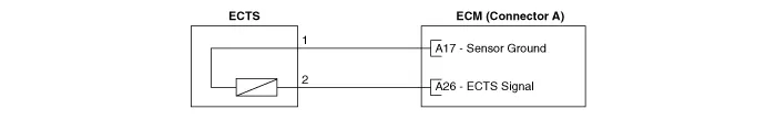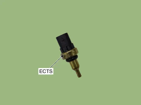 Engine Coolant Temperature Sensor (ECTS) is located in the engine coolant passage of the cylinder head for detecting the engine coolant temperature. The ECTS uses a thermistor whose resistance changes with the temperature.