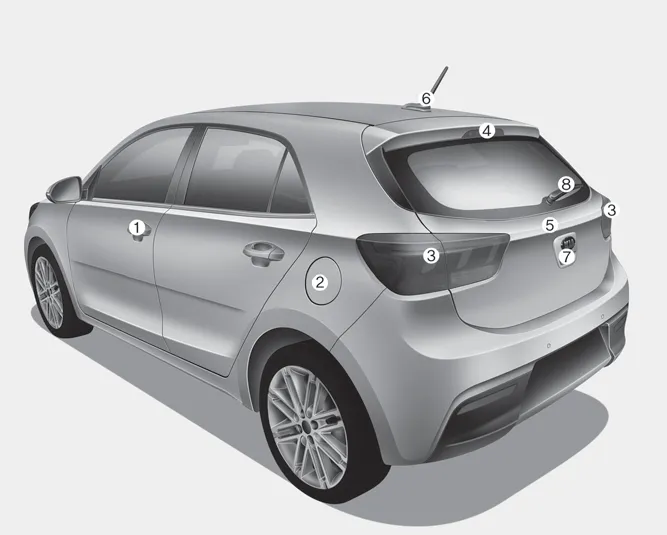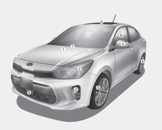 1. Inside door handle 2. Inner fuse panel 3. Power window switches 4. Power window lock button 5. Outside rearview mirror control switch 6. Outside rearview mirror folding switch 7.
