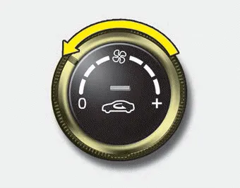Temperature control The temperature control knob allows you to control the temperature of the air flowing from the ventilation system. To change the air temperature in the passenger compartment, turn the knob to the right for warmer and hot air, or to the left for cooler air.