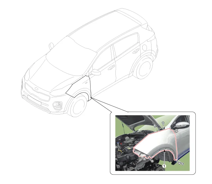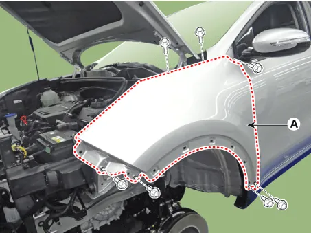 Remove the front wheel guard. (Refer to Body Side Molding - "Front Wheel Guard") |
