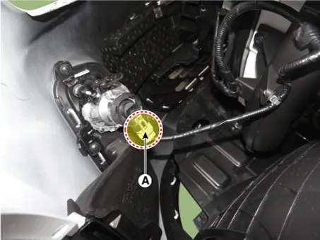 Disconnect the front bumper main connector (A).