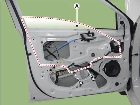 Remove the front door trim. (Refer to Front Door - "Front Door Trim") |