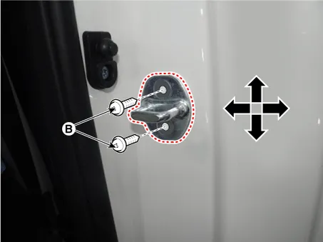 Hold the outer handle out, and push the door against the body to be sure the striker allows a flush fit. If the door latches properly, tighten the screws and recheck. |
