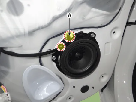 Disconnect the front door speaker connector (A), and then remove the wiring mounting clips.