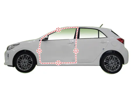 | 1. Front door trim 2. Front door panel 3. Front door rear channel & run 4. Front door belt inside weatherstrip 5. Front door belt outside weatherstrip |