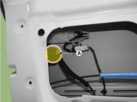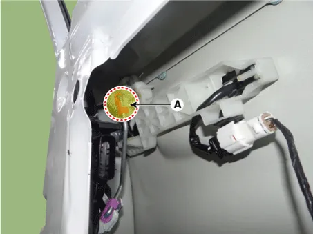 Disconnect the front door latch connector (A).