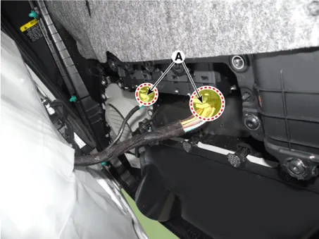 Components and components location Component Location 1. Horn switch 2. Horn relay 3. Horn 4. Clock spring Repair procedures Removal 1. Remove the front bumper assembly.
