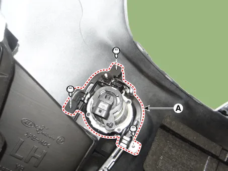 Remove the front fog lamp assembly (A) after loosening the mounting screws.