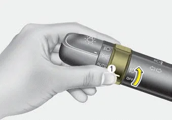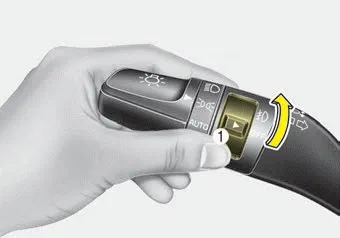 Fog lights are used to provide improved visibility when visibility is poor due to fog, rain or snow, etc. The fog lights will turn on when the fog light switch (1) is turned to the on position after the headlights are turned on.