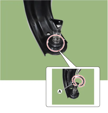 Remove the snap ring (A) from the lower arm ball joint.