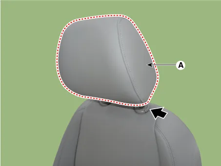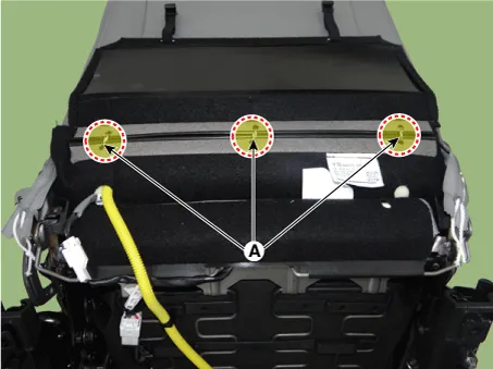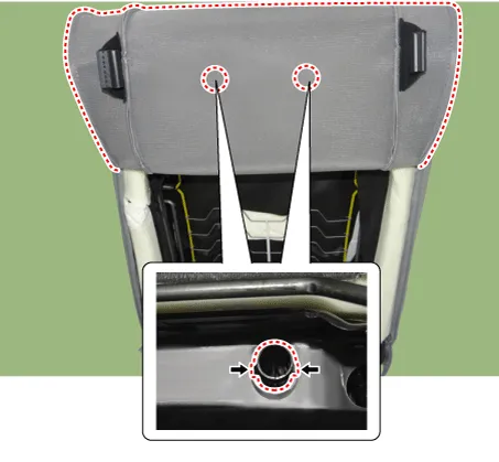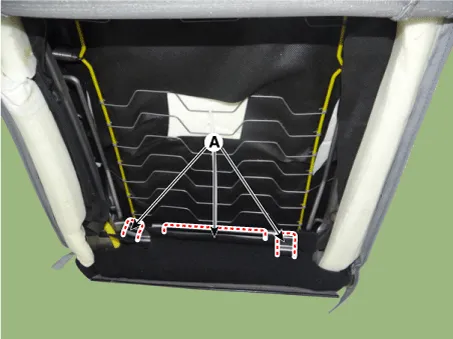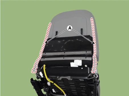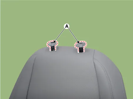 Turn the front seat back cover inside out. Then pull out and remove the headrest guides (A) while pinching both sides of the lower part of the guides.