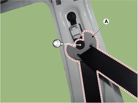 Remove the front seat belt upper anchor (A) after loosening the mounting bolt.