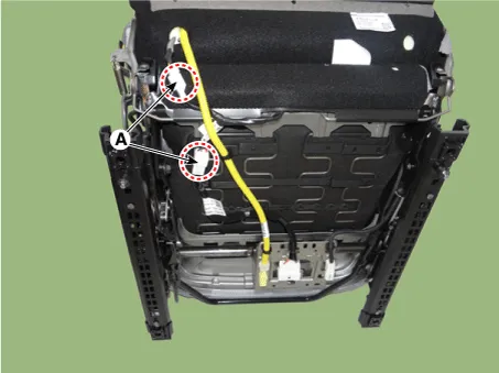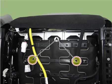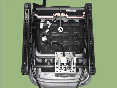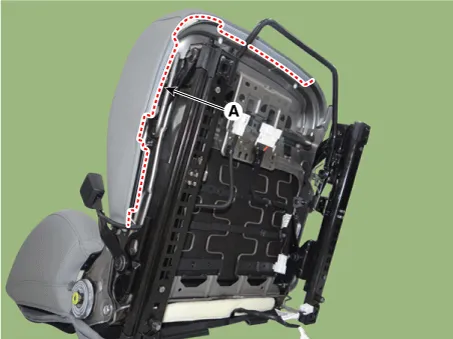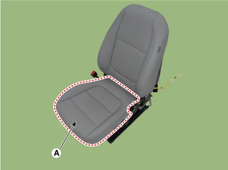 Remove the front seat cushion cover (A) from the front seat cushion frame.