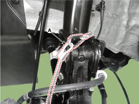 Loosen the nut (A) and then remove the stabilizer link.