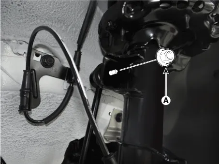Remove the lower arm bolt and nut (A).