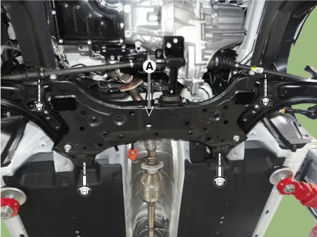 Loosen the bolts & nuts and then remove the sub frame (A).