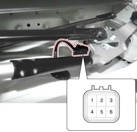 5. Bolt 6. Wiper motor & linkage assembly 7. Wiper motor connector |