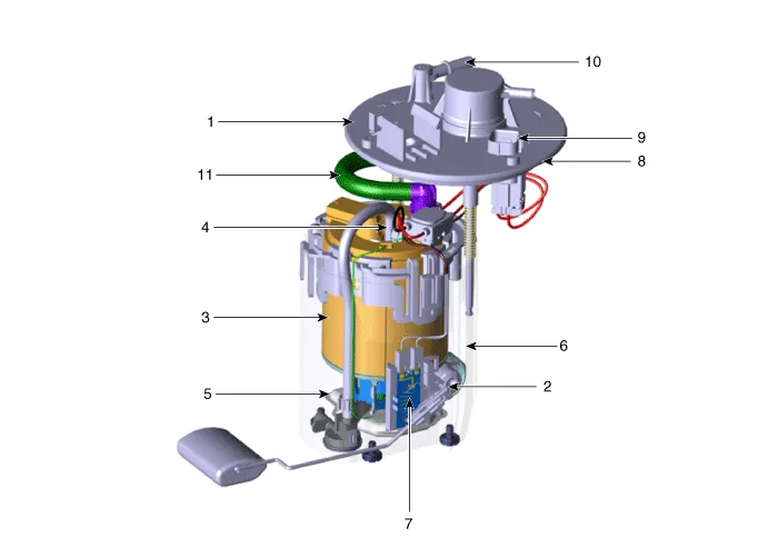 7. Fuel Sender 8. Fuel Pump Plate Packing 9. Fuel Pump Motor & Fuel Sender Connector 10. Fuel Feed Port 11. Fuel Feed Tube |