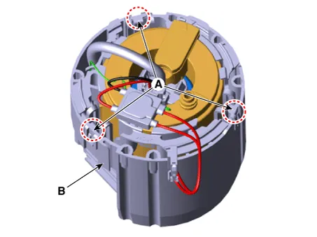 Remove the fixing clip (A), and then assist pump assembly (B).