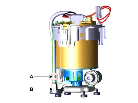 Disconnect the fuel feed tube quick-connector (A) after removing the fixing clip (B).