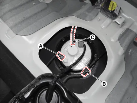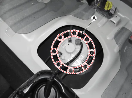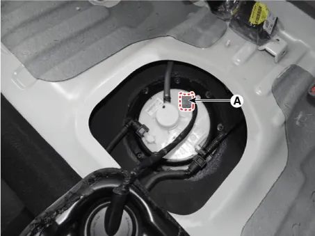 Remove the plate cover (A) after removing the installation bolts and then remove the fuel pump from the fuel tank.