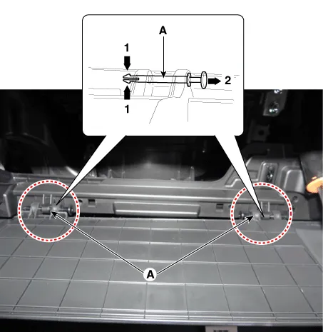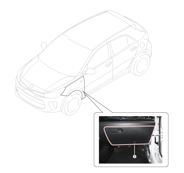 Components and components location Component Location 1. Crash pad lower panel Repair procedures Replacement Put on gloves to protect your hands.