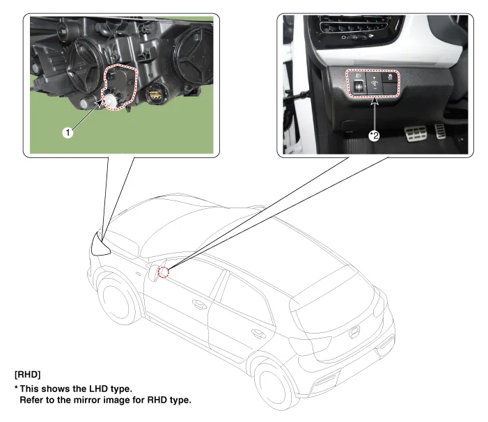 Description and operation Description The mode control actuator is located at the heater unit. It adjusts position of mode door by operating mode control actuator based on signal of A/C control unit. Pressing mode select switch makes the mode control actuator shift in order of Vent → Bi-Level → Floor → Mix.