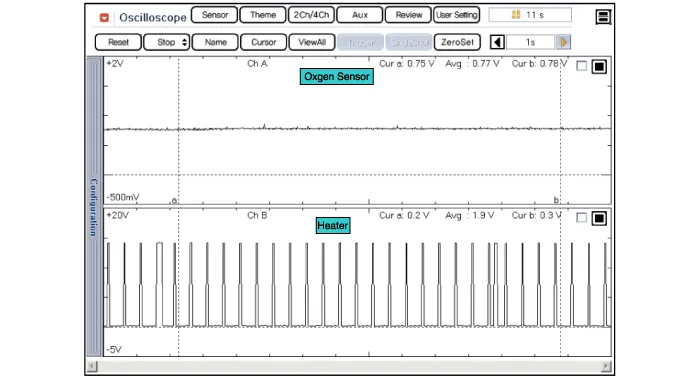 After it compares oxygen consistency of the atmosphere with the exhaust gas, it transfers the corresponding voltage signal to the ECM. When A/F ratio is rich or lean, it generates approximately +1V or 0V respectively.