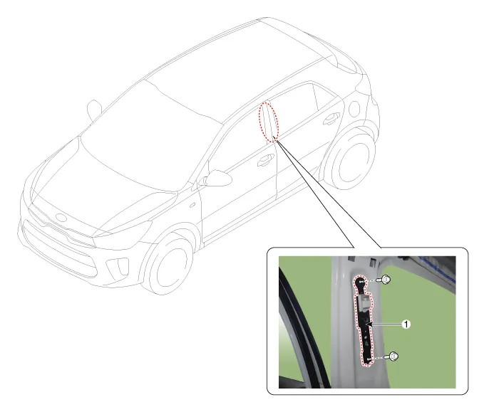 Components and components location Component Location 1. Front seat belt retractor Repair procedures Replacement 1.