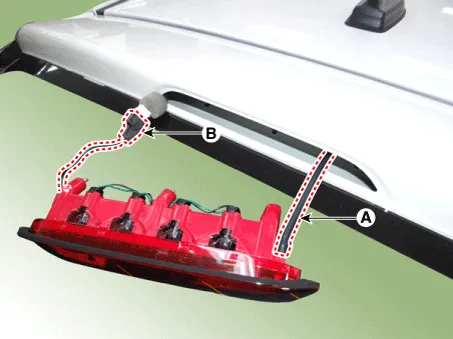 Disconnect the washer nozzle (A) and high mounted stop lamp connector (B).