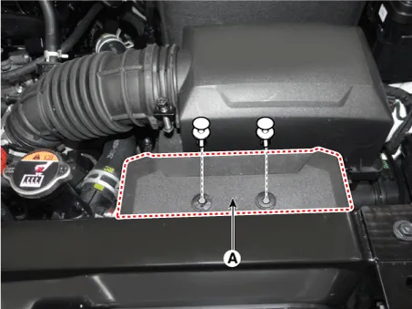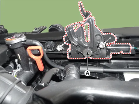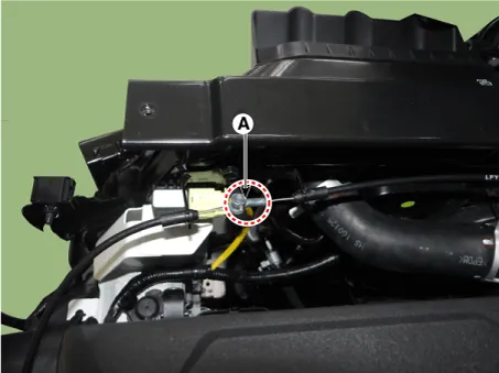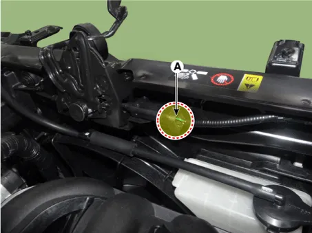 Remove the hood lower latch assembly (A) after loosening the bolts.
