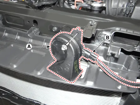 Remove the horn (A) after disconnecting the horn connector (B) and loosening the mounting the bolt.