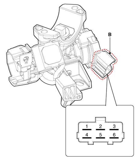 Remove the ignition switch connector (A) and key warning / immobilizer connector (B).
