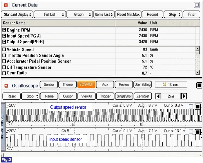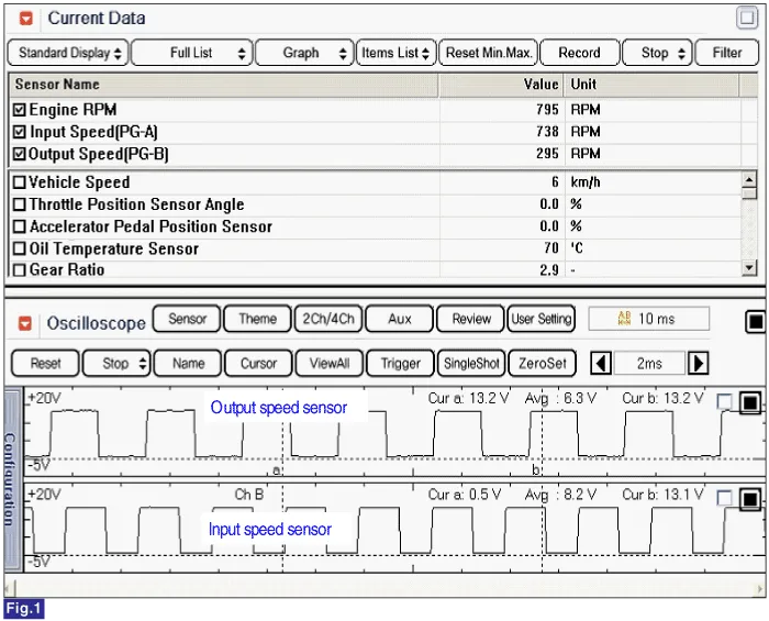 Check the signal waveform of input speed sensor using the KDS/GDS. |