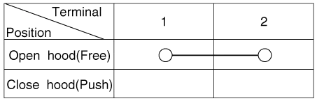Check for continuity between the terminals and ground as shown below. (Refer to Body - "Hood Latch Assembly")